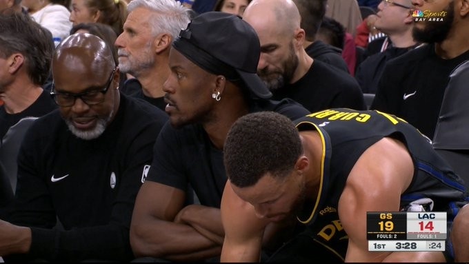久违了!吉米·巴特勒自受伤后首次出现在球队替补席 便装观战